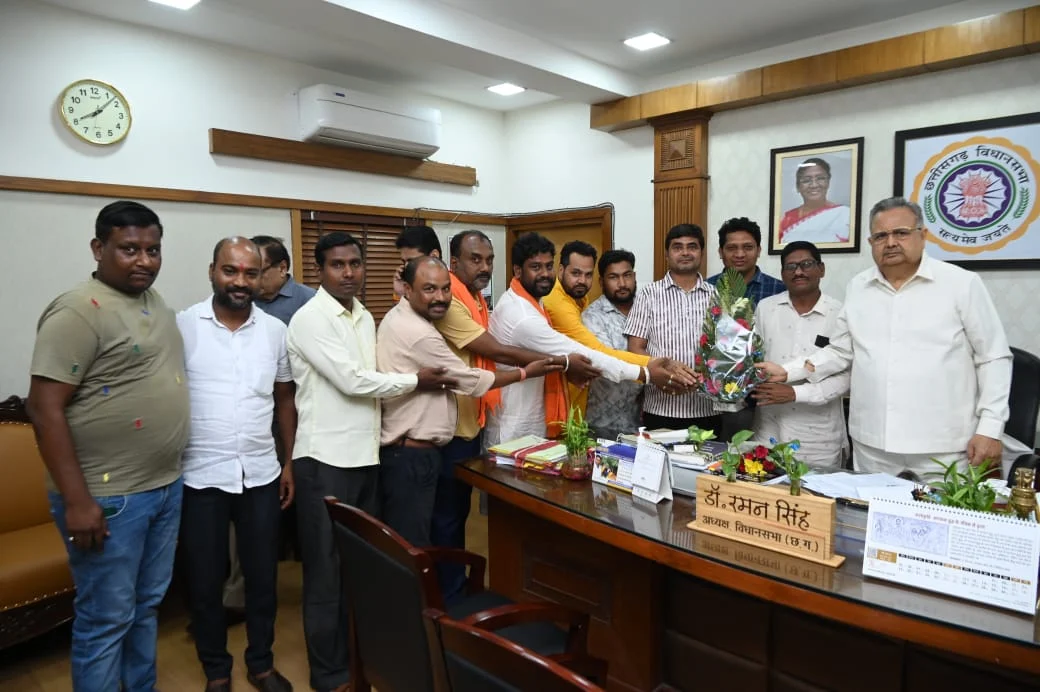दल्लीराजहरा :- भारतीय जनता पार्टी के युवा नेता सौरभ लूनिया के नेतृत्व में दल्लीराजहरा भाजपा मंडल के कार्यकर्ताओं ने विधानसभा अध्यक्ष डॉ रमन सिंह से सौजन्य मुलाकात किया। नगर पालिका अध्यक्ष तोरण साहू व उपाध्यक्ष मनोज दुबे ने दल्लीराजहरा के विकास हेतु चर्चा किया व डॉ रमन सिंह से दल्लीराजहरा आने का निवेदन किया जिसके बाद विधानसभा अध्यक्ष डॉ रमन सिंह ने आश्वस्त किया है। की वे शीघ्र दल्लीराजहरा आयेंगे। व विकास कार्य हेतु पैसे की कही कोई कमी नहीं होने देगे। इस दौरान भाजपा मंडल अध्यक्ष रामेश्वर साहू भाजपा युवा नेता श्याम जायसवाल, पार्षद वार्ड क्रमांक 09 मेवा पटेल, पार्षद वार्ड क्रमांक 25 प्रमोद रात्रे , संजय सिंह, ललित जैन , राकेश देवांगन, दुष्यन्त कुमार, जीवन साहू शामिल थे।