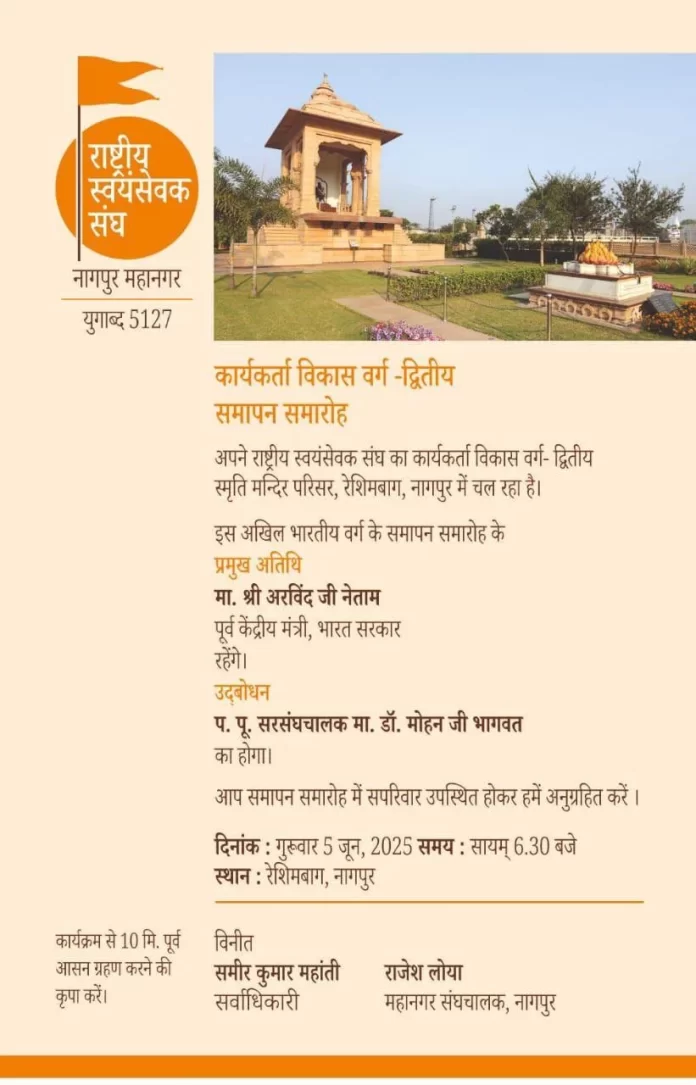 - 5 जून को संघ के कार्यकर्ता विकास वर्ग में मुख्य अतिथि होंगे नेताम