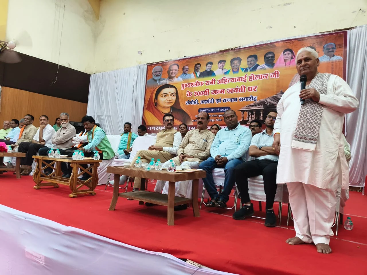 जगदलपुर पुण्यश्लोक रानी अहिल्याबाई होलकर की 300वीं जयंती पर नगर निगम द्वारा शनिवार को डॉ श्यामा प्रसाद मुख़र्जी सभागार टाउन हॉल में संगोष्ठी, प्रदर्शनी व सम्मान समारोह आयोजित किया गया। कार्यक्रम में मुख्य अतिथि बस्तर सांसद महेश कश्यप एवं मुख्य वक्ता राज बहादुर सिंह राणा थे।अध्यक्षता महापौर संजय पाण्डे ने की। विशिष्ट अतिथि पूर्व विधायक संतोष बाफना, लच्छूराम कश्यप, पीएससी के पूर्व सदस्य शिवनारायण पांडे, जिला भाजपा अध्यक्ष वेद प्रकाश पांडे, पूर्व जिला अध्यक्ष विद्याशरण तिवारी थे।