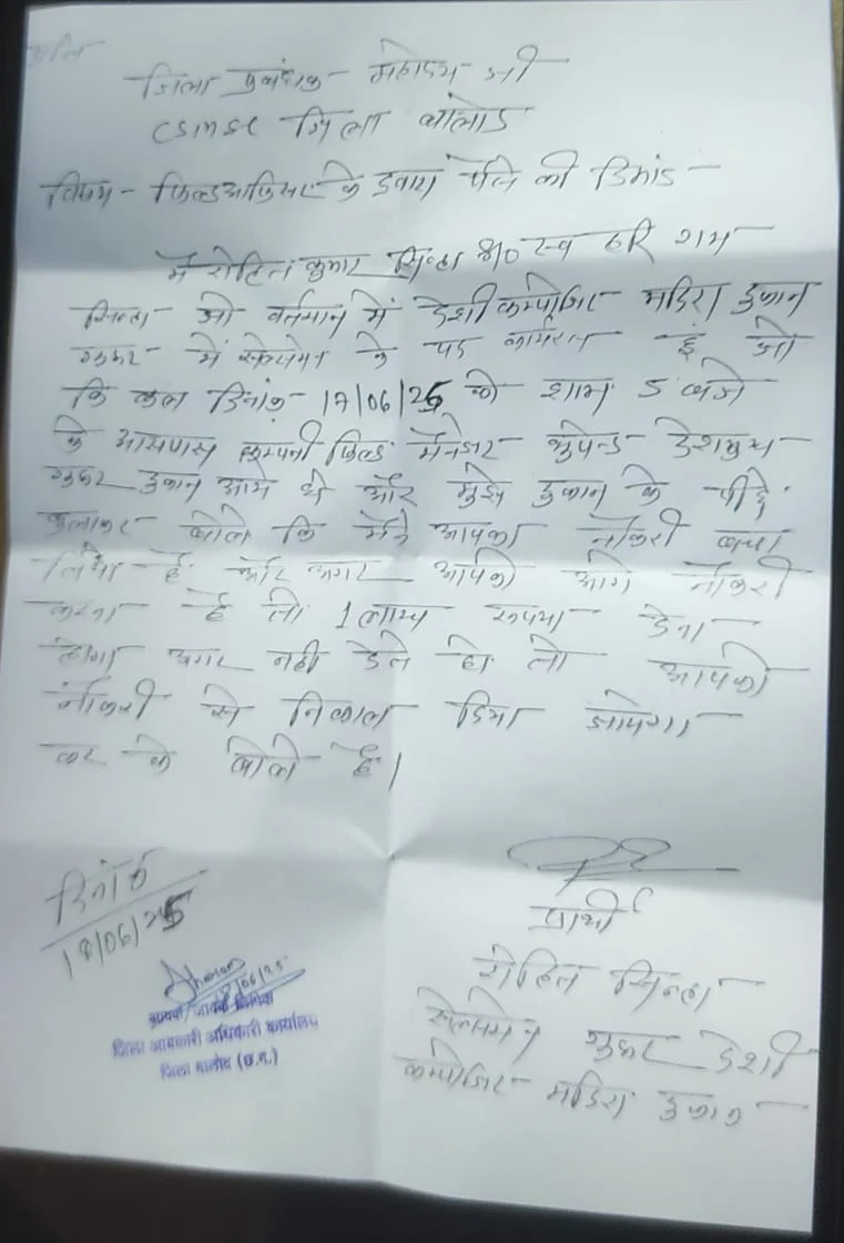 - गुरुर के सेल्समैन ने जिला आबकारी अधिकारी से की शिकायत