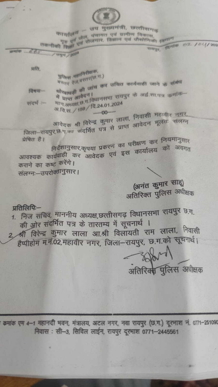 जगदलपुर भले ही सुशासन की लाख दुहाई दी जाएं, मगर उपमुख्यमंत्री एवं गृहमंत्री जैसे जिम्मेदार जनप्रतिनिधि के पत्र को पुलिस विभाग में कोई तवज्जो नहीं दिया जा रहा है। यही वजह है कि एक वर्ष बाद भी प्रार्थी को भटकना पड़ रहा है।