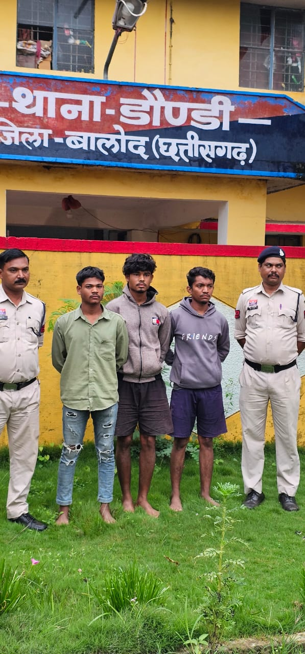 श्रीमान पुलिस अधीक्षक श्री योगेश पटेल के निर्देशन एवं अति. पुलिस अक्षीक्षक श्री मोनिका ठाकुर एवं नगर पुलिस अधीक्षक श्रीमति डॉ चित्रा वर्मा के मार्गदर्शन में थाना डौण्डी के अपराध क्रं. 89/2025 धारा 103, 3(5) BNS के मामले में त्वरित कार्यवाही करते हुए तीन आरोपियो को ज्युडिशियल रिमाण्ड पर भेजा गया ।