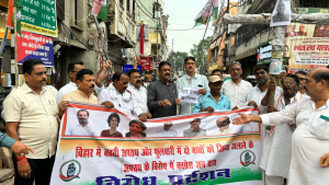 जगदलपुर कांग्रेस के पूर्व विधायक व एआईसीसी द्वारा बिहार विधानसभा चुनाव के लिए नियुक्त पर्यवेक्षक रेखचंद जैन के नेतृत्व में शुक्रवार को पटना के शहीद भगत सिंह चौक पर बिहार में कानून-व्यवस्था की बदहाली के खिलाफ बिहार के मुख्यमंत्री नितीश कुमार का पुतला फूंका गया।