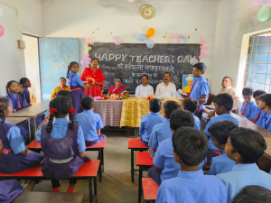 शासकीय पूर्व माध्यमिक शाला- शेरपार के प्राचार्य- श्रीमती निर्मला ठाकुर ने अपने उद्बोधन में कहा कि “गुरू गोविंद दोउ खड़े, काके लागु पांय, बलिहारी गुरु आपकी गोविंद दियो बताय,” का उल्लेख करते हुए कहा कि संत कबीर दास द्वारा गुरुजनों की महिमा को व्यक्त कर उनकी महानता को प्रदर्शित किया गया है। इसके अलावा हमारे ग्रंथों में भी गुरु को सर्वोच्च स्थान दिया गया है। माता-पिता के बाद गुरु ही एक बालक का प्राथमिक मार्गदर्शक होता है, जो उसे अनुशासन, ईमानदारी, कर्तव्य पालन का महत्व बताने के साथ-साथ समाज में रहन-सहन का सलीखा सिखाते है।
