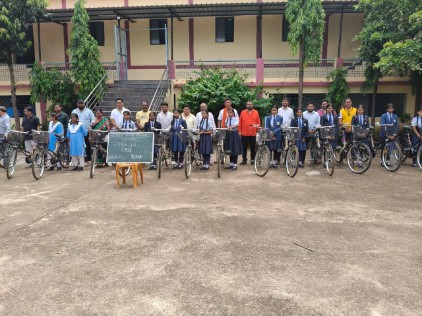 दल्लीराजहरा छत्तीसगढ़ शासन स्कूल शिक्षा विभाग द्वारा नि:शुल्क सरस्वती साइकिल योजना के अंतर्गत सन् 2025_26 कक्षा नवमी में अध्यनरत नव प्रवेशित बालिकाओं को अनुसूचित जाति वर्ग से 13 साइकिल जनजाति वर्ग से 14 साइकिल पिछड़ा वर्ग एवं सामान्य वर्ग में 16 कुल 43 बालिकाओं को साइकिल वितरित किया गया इस कार्यक्रम में नगर पालिका अध्यक्ष तोरण लाल साहू उपाध्यक्ष श्री मनोज दुबे रमेश गुजर अध्यक्ष (SMDC) सौरभ लूनिया महामंत्री जिला बालोद रामेश्वर साहू मंडल अध्यक्ष राकेश द्विवेदी पूर्व मंडल अध्यक्ष श्रीमती अरुणा रामटेके पार्षद वार्ड क्रमांक 18 संजीव सिंह पार्षद वार्ड क्रमांक 4 विशाल मोटवानी पार्षद वार्ड क्रमांक 24 तरुण साहू पार्षद वार्ड क्रमांक 15 सुरेश जायसवाल पार्षद वार्ड क्रमांक 22 श्री प्रमोद रात्रे वार्ड पार्षद वार्ड क्रमांक 25 मेवा पटेल पार्षद वार्ड क्रमांक 9 टी,ज्योति पार्षद वार्ड क्रमांक 26 मुकेश खस,समर्थ लखानी, विधायक प्रतिनिधि अजय छाजेड़ संस्था प्रमुख टी ,आर,रानाडे एवं समस्त शाला परिवार उपस्थित थे इस महत्वाकांक्षी योजना की सराहना करते हुए नगर पालिका अध्यक्ष ने अपने उद्बोधन में कहां कि इस योजना में एससी एसटी वर्ग के बालिकाओं के लिए जाति प्रमाण पत्र तथा पिछड़ा एवं सामान्य वर्ग की बालिकाओं के लिए गरीबी रेखा प्रमाण पत्र के आधार पर पात्रता होती है यह योजना बालिकाओं के स्कूल आने जाने में सुविधा प्रदान करने हेतु लागू किया गया है छात्राओं में शिक्षा को बढ़ावा देने में प्रेरणा मिलती है।