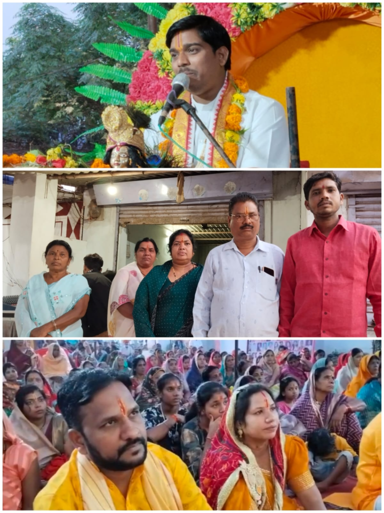 नगर में श्रीमद भागवत सप्ताह ज्ञान यज्ञ का आयोजन नगर वासियों के द्वारा 21 नवंबर से 29 नवंबर तक दोपहर 2:00 बजे से शिकारी बाबा वार्ड क्रमांक 5 के 256 चौक पर किया जा रहा है । श्रीमद् भागवत ज्ञान यज्ञ सप्ताह के पारायणकर्ता है भगवताचार्य पंडित अनिल तिवारी ।श्रीमद् भागवत कथा के चौथे दिन कल गजेंद्र मोक्ष ,सागर मंथन ,वामन चरित्र , श्री राम चरित्र और श्री कृष्ण जन्म की कथा बताई भागवताचार्य पंडित अनिल तिवारी ने कथा के मध्य में बताया कि हमें जीवन में माता-पिता की हमेशा ऋणी होना चाहिए । उनके द्वारा हमें सवारने और योग्य बनाने के लिए उनके द्वारा किए गए तपस्या का कोई कीमत नहीं है ।वह अमूल्य है उन्होंने कथा के माध्यम से बताया कि एक परिवार बहुत ही निर्धन था उनके दो बेटे थे ।