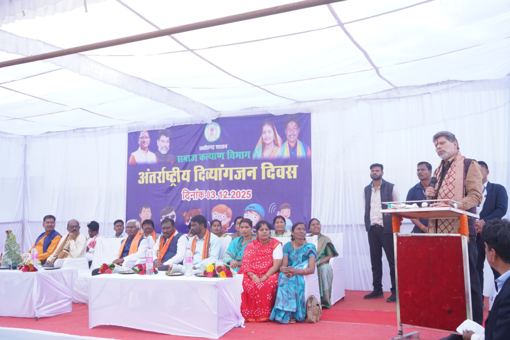 अंतरराष्ट्रीय दिव्यांगजन दिवस पर आज छत्तीसगढ़ समाज कल्याण विभाग द्वारा आड़ावाल के शासकीय दृष्टि एवं श्रवण बाधितार्थ विद्यालय में विभिन्न कार्यक्रमों का आयोजन किया गया। मुख्य अतिथि भाजपा प्रदेश अध्यक्ष एवं विधायक किरण सिंह देव थे।किरण सिंह देव ने सभी उपस्थितजनों को अंतरराष्ट्रीय दिव्यांगजन दिवस की बधाई एवं शुभकामनाएं दी। अंतरराष्ट्रीय दिव्यांगजन दिवस पर आयोजित कार्यक्रम में सर्वप्रथम भाजपा प्रदेश अध्यक्ष एवं विधायक किरण देव एवं जनप्रतिनिधियों ने मां सरस्वती के छायाचित्र पर माल्यार्पण कर पूजा अर्चना की। तत्पश्चात कार्यक्रम में दृष्टि एवं श्रवण बाधितार्थ विद्यालय के बच्चों द्वारा अतिथियों के सम्मान में स्वागत गीत प्रस्तुत किया गया। कार्यक्रम को संबोधित करते हुए भाजपा प्रदेश अध्यक्ष एवं विधायक किरण देव ने कहा कि अंतरराष्ट्रीय दिव्यांगजन दिवस मनाने का उद्देश्य दिव्यांगजन बच्चों एवं बड़ों में आत्मविश्वास व आत्मनिर्भर बनाने का लक्ष्य है। दिव्यांगजन बच्चों में प्रतिभा की कोई कमी नहीं होती है।