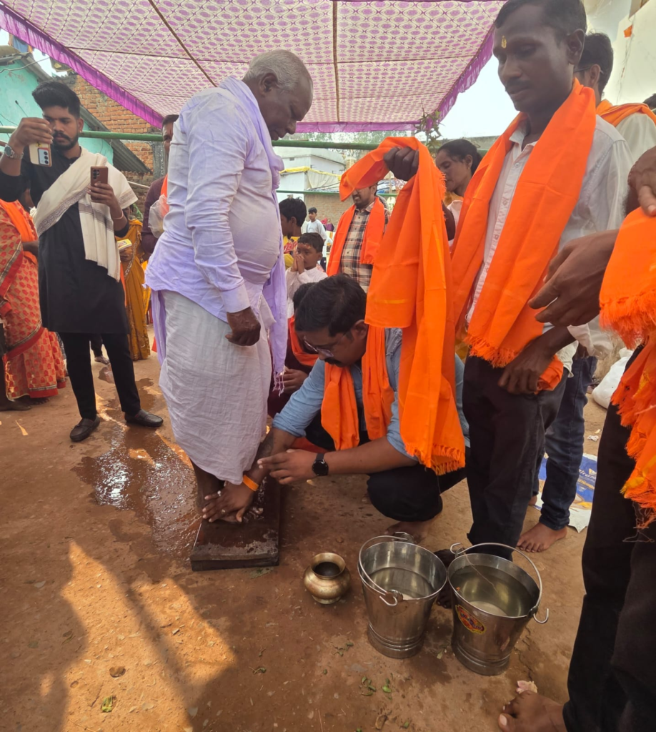 जगदलपुर नगर के विजय वार्ड में आज एक महत्वपूर्ण सामाजिक व धार्मिक कार्यक्रम का आयोजन किया गया, जिसमें ईसाई धर्म अपना चुके 11 लोगों ने 22 साल बाद अपने मूल धर्म हिंदू धर्म में घर वापसी की। विजय वार्ड में आज सनातन की बड़ी विजय हुई है। यह घर वापसी कार्यक्रम प्रखर हिंदूवादी अविनाश सिंह गौतम के मार्गदर्शन में एवं डालेश्वर नाग के नेतृत्व में संपन्न हुआ। कार्यक्रम में अविनाश सिंह गौतम और विहिप के नगर अध्यक्ष प्रतीक सिंह ने मूल धर्म में लौटने वाले लोगों के पैर धोकर और उन्हें भगवा गमछा व श्रीमद भगवत गीता भेंट कर उनकी मूल धर्म में वापसी करवाई।अविनाश सिंह गौतम ने बताया विजय वार्ड के ढालेश्वर नाग व उनके युवा साथियों के अथक प्रयास के बाद लच्छिन बघेल, सोमेश बघेल, मंगल दाई बघेल, फूल बघेल, आशीष बघेल, असीमा बघेल, विलेशी बघेल, सुप्रिया बघेल, गोमती बघेल, भगवती बघेल एवं पार्वती समेत कुल 11 लोगों के परिवार ने 22 वर्षों बाद अपने मूल धर्म में वापसी की और कहा 22 वर्षों बाद श्रीराम ने बुलाया है।