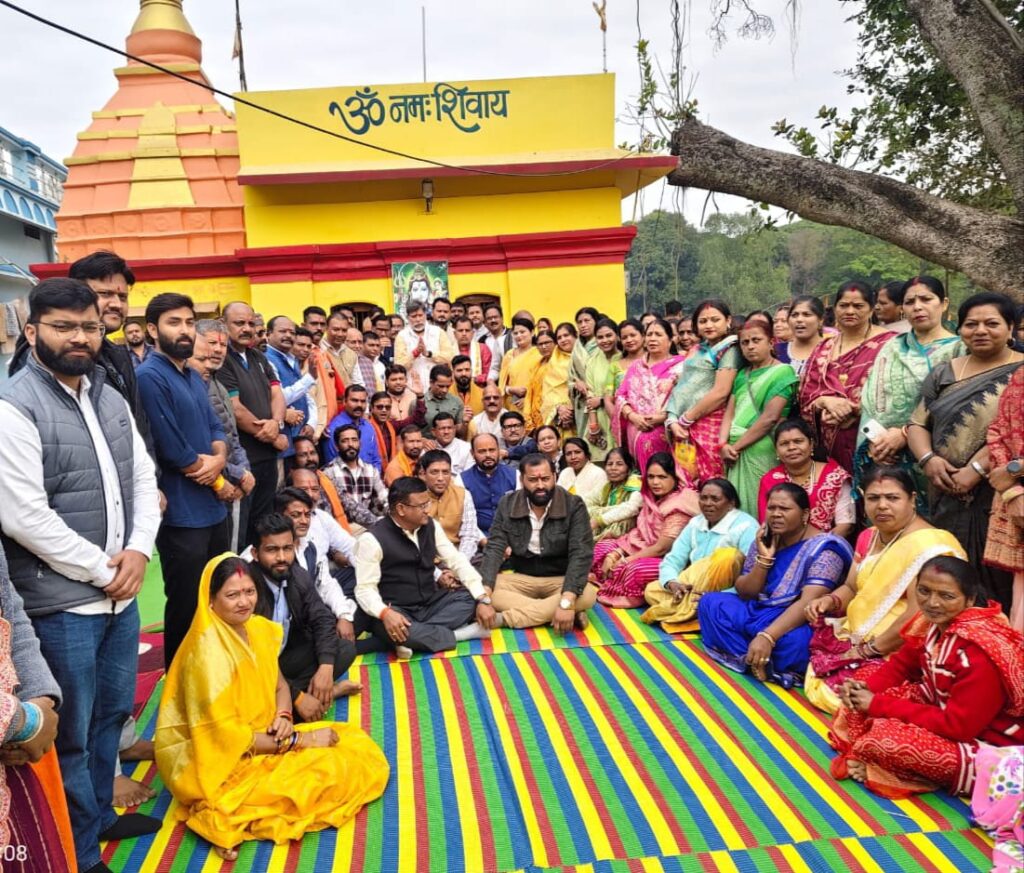 भाजपा प्रदेश अध्यक्ष किरण सिंह देव ने महादेव घाट शिवमंदिर में कार्यकर्ताओं के साथ किया जलाभिषेक, ओंकार मंत्र का 101 सामूहिक जाप किया
